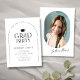 La simple invitación a graduarse en blanco y negro presenta tipografía moderna y arcos, con foto en la parte trasera, elegante y minimalista. Personalizado con tu propia información de fotos y fiestas de grado.