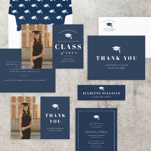 Invitaciones de Graduación de Tipografía Simple. Agregue fácilmente una foto(s) al reverso o detalles adicionales