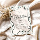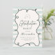 Añade un toque divertido y moderno a tu fiesta de posgrado con esta invitación a graduación de marco ondulado verde! Con un elegante borde dibujado a mano y un fresco fondo verde sabio con juguetones de rayas orgánicas, este diseño es perfecto para el graduado que quiere algo un poco diferente —moda, mínimo y lleno de personalidad. Características del producto: diseño de marcos ondulados de estilo doodle contemporáneo Elegante combinación de tipografía sérica y guion Paleta de color verde suave y neutro para un toque moderno Plantilla editable o opciones impresas disponibles en formato de 5" x 7" (tamaños de personalizado bajo petición) Ideal para celebraciones de graduación de secundaria o universitarios Celebre sus logros con estilo con esta invitación audaz pero de buen gusto que es tan única!
