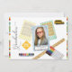 Añada estilo y un toque moderno a la graduación de su hijo con este diseño de fotograma con elementos escolares en el fondo. Guión de "graduación" a la izquierda y los ítems son un bus escolar, señal de cruce escolar, una regla, marcadores coloridos y paleta de pintura acuarela. Tres marcos polka-dot (amarillo, verde y azul) con la parte superior como plantilla de foto. Añade nombre y año de graduación bajo foto. Bandas únicas en la parte superior e inferior sobre fondo blanco en la parte delantera y trasera. Se incluyen plantillas de texto.
