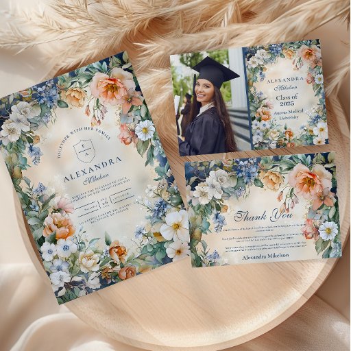 Invite a sus amigos y familiares a celebrar el día especial de su graduación con nuestra invitación a graduar en el jardín de flores silvestres. Con un impresionante diseño de prado de flores silvestres, esta invitación combina la belleza de la naturaleza con tu foto personal, ofreciendo un aspecto fresco y moderno que es tan único como tu graduado. La paleta suave en color pastel y los delicados detalles florales le dan un tono sereno y elegante, mientras que el espacio de personalizable le permite agregar su foto, nombre de graduado, año de graduación y detalles del evento. Ya sea que esté organizando una reunión íntima o una celebración más grande, esta invitación es la manera perfecta de marcar el logro y hacer que su evento se sienta inolvidable. ¡Pida ahora que envíe su elegante y personalizada invitación a graduarse!