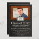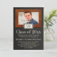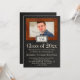 Está listo para el mundo corporativo con esta invitación masculina de graduación de moda que incluye una foto del hombre guapo. Obtén el aspecto de cuero negro y un marco metalizado plateado con regalo de monograma personalizado personalizado, con un gráfico impreso.