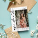 Elegante invitación para graduación blanca personalizada con una foto en la portada y tres fotos más en la parte de atrás. Invitación de graduación de doble cara con fondo blanco. 2 en 1 invitación de graduación e invitación personalizada con fotos y el nombre del graduado en negro.