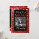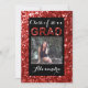 Añada una sola foto digital a esta invitación de graduación de color rojo brillante con aspecto de purpurina. Una gran manera de expresar el lado femenino y femenino de la chica graduada en rojo y negro cerezo metálico. Guiar el texto con su nombre delante.