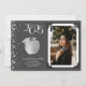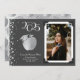 ¡Celebremos al nuevo profesor graduado de la escuela con esta manzana de profesores de plata y gris con gorra de graduación, invitación de graduación! Elegante con un borde fotográfico vintage y acentos de confeti plateado! ¡Perfecto para quien se gradúe de la universidad y se convierta en profesor!