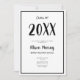 Una invitación informal moderna para una fiesta de graduación de guiones en un borde negro con tipografía caligráfica y sans serif para ese borde clásico pero elegante. Coloque su foto en la parte posterior para una invitación más personalizada.