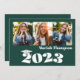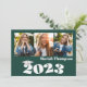Este diseño presenta una clase de grado de graduación de 2023, una plantilla de collage de fotografías múltiples para graduados, una tabla de morteros verde oscuro de la selva, una escuela secundaria o universitaria, un sencillo estilo minimalista mínimo moderno, un divertido estilo de escritura tipográfica, un sencillo tema básico de color negro, invitaciones de invitaciones para graduación, una foto de fiestas de grado invita a tarjetas, una tarjeta de foto básica para graduación negra