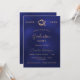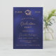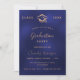 Una moderna y elegante invitación a la fiesta de graduación. Un fondo azul marino, texto dorado. El color azul es desigual. Personalice y agregue un nombre, año y detalles.