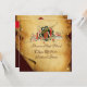 Elegante y elegante diseño sobre un antiguo pergamino marrón y una franja roja brillante. Fácil de personalizar con sus iniciales y su propio texto como tarjeta de invitación.