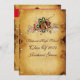 Elegante y elegante diseño sobre un antiguo pergamino marrón y una franja roja brillante. Fácil de personalizar con sus iniciales y su propio texto como tarjeta de invitación.