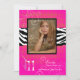 Invitaciones de graduación y/o fiesta PixDezines 2011 con estampado de cebra y negro y espirales de perlas sobre un patrón de arlequín rosa fucsia. Simplemente agregue una foto de su graduado. Copyright © 2010 PixDezines.com y PixDezines en zazzle.com