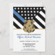 Honren la dedicación y el duro trabajo de un nuevo agente de la policía con esta invitación a graduarse de la policía personalizable. Con una insignia de la policía y una bandera de la fuerza policial con audaces rayas blancas y negras y una orgullosa delgada línea azul, este diseño simboliza fuerza, servicio y sacrificio. La invitación se personaliza con el nombre del graduado y los detalles de su fiesta, lo que lo convierte en un recuerdo memorable para amigos, familiares y colegas. Perfecto para celebrar la graduación, promoción o hito de una academia de policía en la carrera de un futuro oficial. Invite a sus invitados con estilo y muestre su apoyo al miembro más nuevo de la comunidad de la delgada línea azul.