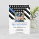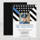 Honren la dedicación y el duro trabajo de un nuevo agente de la policía con esta invitación a graduarse de la policía personalizable. Con una insignia de la policía y una bandera de la fuerza policial con audaces rayas blancas y negras y una orgullosa delgada línea azul, este diseño simboliza fuerza, servicio y sacrificio. La invitación se personaliza con el nombre del graduado y los detalles de su fiesta, lo que lo convierte en un recuerdo memorable para amigos, familiares y colegas. Perfecto para celebrar la graduación, promoción o hito de una academia de policía en la carrera de un futuro oficial. Invite a sus invitados con estilo y muestre su apoyo al miembro más nuevo de la comunidad de la delgada línea azul. Personalizar aún más lejos con una foto del graduado de la policía.