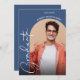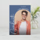 Añade tu foto favorita al frente de estas invitaciones a una fiesta de graduación azul, con la inscripción "graduado" de la palabra en letras de moda junto con tu nombre y año de clase. Los detalles de su fiesta están en la parte de atrás. MÁS diseños y colores hechos en nuestra tienda, incluyendo anuncios de graduación, guardar las tarjetas de fecha y postales.