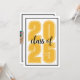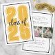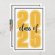 La parte delantera presenta el año "2025" en gran letra en negrita, con "clase de" elegantemente escrito en escritura a lo largo del medio. Esta versión muestra un llamativo esquema de color amarillo dorado, negro y blanco, pero todos los colores (incluyendo el año, el texto del guión y el marco) se pueden personalizar para que coincidan con los colores de la escuela o las preferencias personales. El color de fondo también se puede ajustar para un toque personalizado. La parte de atrás se transforma en una invitación para una fiesta de graduación, con tres anuncios de fotos centrados para mostrar momentos memorables del graduado. Debajo de las fotos, los detalles del evento como la fecha, hora, ubicación e información de RSVP están ordenados cuidadosamente para facilitar su lectura. El diseño mantiene una apariencia limpia y pulida, con un color de marco de personalizable que se corresponde con la parte delantera. Completamente editable para adaptarse a tu estilo, esta invitación es la forma perfecta de celebrar e invitar a los seres queridos a unirse a las festividades!