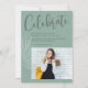 Anuncie el día especial de su graduación con esta minimalista tarjeta de graduación de boho que incluye tonos verdes de sabio suave, un guión escrito a mano y fotos personales. Diseñada para graduaciones de secundaria o universitarias, esta plantilla elegante le permite actualizar fácilmente los detalles del evento y cargar las fotos favoritas de su graduado. Ideal para enviar correos a amigos y familiares o para repartirlos en fiestas de graduación. Hacerlo único suyo con una simple personalización.