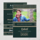 Elegante y contemporáneo busca su graduación con un estilo masculino en estampados con motivos verdes y taupicos con foto y nombre de grado en el frente, clase del año y detalles de la celebración de contacto del grado de contacto del evento en la parte posterior.