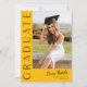 Esta elegante y moderna invitación para graduarse con fotos cuenta con una foto vertical y un titular con el nombre de la escritura de personalizable y el texto en la parte delantera. La parte trasera tiene una invitación con detalles del fiesta. Una gran manera de mostrar a tu graduado. Pulse el botón de edición para personalizar este diseño.