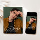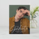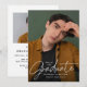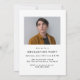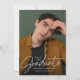 Celebra el logro de tu graduación con estilo con esta moderna y minimalista invitación a la fiesta de graduación. El diseño presenta su foto vertical senior con "Graduado" elegantemente mostrado en un sobrepuesto de escritura manuscrita blanca, creando un aspecto elegante y sofisticado. Personalice el frente con su nombre, escuela y año de graduación para un toque único. La parte posterior muestra una foto horizontal con todos los detalles de tu fiesta de graduación mostrados abajo. Perfecto para graduados de secundaria y universitarios, esta invitación simple y elegante es una manera atemporal de invitar a amigos y familiares a celebrar su gran día.
