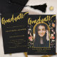 ¡Celebra la graduación universitaria de tu hija graduada con una elegante y sincera invitación a su fiesta de graduación! Esta invitación a la fiesta de graduación de caligrafía en oro moderno y negro de escritura está diseñada para captar la emoción y alegría de este hito especial. Con una elegante caligrafía de oro y un arco de acuarela de fondo negro, esta invitación exuberante encanto elegante y celebración. El frente resalta el nombre de su hija y los detalles de su fiesta en la hermosa tipografía de escritura dorada sobre un fondo negro, mientras que el reverso incluye información adicional de eventos en la tipografía moderna de oro. Esta invitación incluye una plantilla de fotos fácil de usar, que le permite personalizarla con una preciada foto de su graduado, haciéndolo realmente especial. Obra de arte original y diseño de la artista Catherine Sweetman, esta tarjeta única es la manera perfecta de compartir la emoción de su graduación universitaria e invitar a amigos y familiares a unirse a las festividades. ¡Una hermosa manera de celebrar su increíble logro y el comienzo de su próximo capítulo!