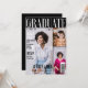 Defiende y anuncia el fiesta de la celebración de tu graduado con este exclusivo diseño de la invitación a la fiesta de graduación de la portada de la revista. El diseño de la grad es parecido a la portada de la revista de una revista de moda. El diseño incorpora un collage de tres fotografías para mostrar las fotos de tres gradas. El director de la revista "The Graduate" crea el nombre de la revista. Puede cambiar fácilmente el color del cabezal para que pueda elegir el que va a funcionar para su foto. (basta con hacer clic en personalizar para acceder a las capas) Los detalles restantes del fiesta de grado se organizan en la portada como un texto de llamada de revista. Puede personalizar el tamaño del texto, el color del texto, la fuente y el diseño para su preferencia personal de diseño.