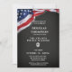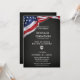Celebre este evento importante con esta invitación de pizarra para graduado de la Academia de Policía con Bandera Americana. Este diseño presenta una bandera americana, una insignia de policía, fondo de pizarra y todos los detalles de la fiesta para el graduado de la academia. Que comience la celebración mientras honra a este orgulloso graduado.