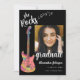 Celebra la increíble graduación universitaria de tu hija con una divertida invitación a la fiesta de graduación de temas musicales, que incluye una atrevida guitarra psico-rosa y un elegante guión blanco con un llamativo fondo negro. Este llamativo y divertido diseño está repleto de vivos tonos de rosa, púrpura, amarillo naranja, azul y verde verde azulado funky, arte psicodélico de guitarra y caligrafía blanca y notas musicales elegantes que captan perfectamente la emoción de la ocasión. Ideal para graduados universitarios, pero también trabaja para una fiesta de graduación de secundaria, esta invitación a graduarse celebra su logro en un estilo moderno inspirado en la música. La parte delantera muestra el nombre de su hija y los detalles de su graduación en una tipografía contemporánea en negrita y en blanco, mientras que la parte trasera ofrece espacio para información adicional sobre eventos. La plantilla de fotos fácil de usar te permite añadir una preciada foto de tu graduado, lo que lo convierte en un keepsake personal y memorable así como una invitación a una fiesta de graduación. Diseñada con obras de arte originales de la artista Catherine Sweetman, esta tarjeta es la combinación perfecta de colores audaces, estilo artístico y elegancia moderna, lo que hace que sea una manera destacada de compartir este alegre hito con amigos y familia.