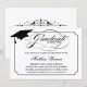 © Socialite Designs. Nuestro elegante guión de texto "graduado" y gorro de graduación, con texto negro sobre fondo blanco, añaden un toque de elegancia simple a esta invitación a graduarse. El reverso de la invitación incluye texto para la educación continua o hitos de su hijo. Reemplace fácilmente nuestro texto de plantilla para su evento especial. Todos los elementos de diseño se pueden mover, cambiar de tamaño o eliminar individualmente.