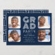Moderna invitación a la fiesta de graduación del collage de fotos GRAD. El diseño incluye 4 imágenes cuadradas del grad, letras decorativas y una plantilla de fiesta sencilla y fácil de personalizar. El fondo azul marino puede cambiarse a cualquier color que desee.