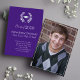 Este diseño presenta una elegante invitación y invitación para graduados, un minimalista gorra de graduación morado, laurel elegante de moda, clase de 2023 2024 2025, colores mínimos de la escuela blanca púrpura, foto de la graduación senior, tarjeta de invitación de invitación a graduación, escuela secundaria o universidad, una invitación de fiesta de grado, graduación clásica mínima