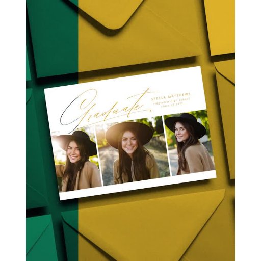 Esta invitación de graduación fotográfica e invitación es la manera perfecta de celebrar a tu graduado. Con un moderno y elegante guión "graduado" en negro y subrayado, este diseño también ofrece espacio para la personalización, incluyendo nombre, escuela y año. La parte posterior es un negro elegante con un patrón de guión sutil que coincide con el subrayado en la parte delantera e incluye espacio para el texto de la invitación a la fiesta de graduación. Esta elegante invitación de graduación funciona bien para un graduado de secundaria o un graduado universitario. Otros colores y estilos disponibles en la colección de Lea Delaveris Design. También disponible como descarga digital.