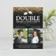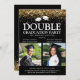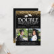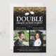Elegante invitación a una fiesta de graduación doble para una celebración conjunta - El diseño presenta un fondo negro de moda que se puede cambiar a cualquier color, decoración falsa de purpurina de oro, dos gorros de graduación de motarboard, una imagen de cada graduado en plantilla cuadrada y una plantilla moderna de tipo de letra blanco, que se puede personalizar fácilmente. ¡Celebremos a los niños!