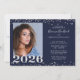 Invitación Graduation 2026 Navy Blue Silver Glitter