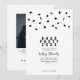 The front features a festive scatter of graduation cap confetti paired with bold, modern typography announcing the party details. On the back, a photo of the graduate is showcased along with space to include their name, school, degree, and class year.