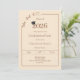 A modern and stylish champagne colored invitation for a graduation party. Text: She did it! with a heart. Decorated with a black graduation cap. Personalize and add a name and the details.