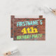 Este divertido diseño de invitación para fiestas de cumpleaños incluye un mensaje como "¡El cuarto cumpleaños del FIESTA!", donde el nombre puede ser personalizado, en la parte delantera. El fondo está representado por una pared de ladrillo de ladrillo marrón rojizo. El texto del mensaje de personalizable en la parte delantera presenta colores como azul, amarillo y verde, y tiene un aspecto inspirado en el de los graffitis pintados. En la parte posterior aparece un mensaje de personalizable que podría incluir detalles relevantes sobre la fiesta de cumpleaños. Las invitaciones a fiestas de cumpleaños como esta pueden ser una manera divertida de invitar a familiares y amigos a una fiesta de cumpleaños que se lleva a cabo para alguien que está celebrando su cuarto cumpleaños. [~Z0000287]
