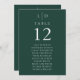 Estos cuadros de asientos de número de tablas de boda de monograma verde esmeralda minimalista se pueden personalizar con sus iniciales monogramadas. Diseñado por Thisisnotme©