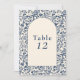 Este elegante diseño de número de mesa de asiento presenta la misma paleta de color azul y crema intemporal con un marco floral vintage, creando un aspecto cohesivo que complementa el tema boda. Cada número de mesa se muestra de forma destacada en la fontsnsi clásica para los asientos más sencillos. El intrincado borde floral y la refinada tipografía le aseguran que este asiento no sólo es funcional, sino que además es un complemento sofisticado de la decoración de la recepción. Perfecto para bodas formales, este diseño combina tradición y elegancia, guiando a sus huéspedes a sus asientos con estilo.