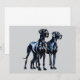 Un ilustracion estilizado de dos majestuosos grandes daneses parados uno al lado del otro, mostrando sus cuerpos elegantes y musculares y sus rasgos elegantes. Los perros son negros con abrigos lisos y brillantes, acentuados por las sombras dramáticas y los resaltados para enfatizar sus fuertes físicos con un sutil efecto acuarela que añade un toque artístico.