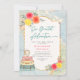 Invitación Gran aventura floral rosa de viaje Verde azulado n