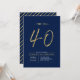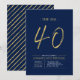 Celebra tu día especial con esta sencilla y elegante invitación para una fiesta de cumpleaños número 40. Este diseño presenta un "Los grandes 40" en letra de pincel con una distribución limpia en un combinado de colores azul marino y dorado. Están disponibles más diseños y suministros para fiestas en mi tienda BaraBomDesign.