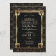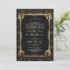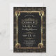 Diseño de estilo Art Deco Gran Gatsby. Presenta un delicado y único Art Deco Nouveau con esquinas de Chicas Flapper, adornos y divisores, magníficos tipos de letra vintage, todo ello sobre un patrón Art Deco dorado sobre fondo negro. Utilice la herramienta Personalizar para agregar su información. Para ver los elementos que coincidan, visite mi colección Art Deco Único de 1920s.