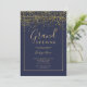 Gran abertura de tipografía azul marino de confeti dorado de moda, una elegante y moda invitación corporativa.