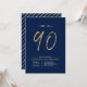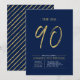 Celebra tu día especial con esta sencilla y elegante invitación a la fiesta de cumpleaños 90. Este diseño presenta un guión de broche "The Big 90" con un diseño limpio en una combinación de colores azul marino y oro. Hay más diseños y suministros de fiesta disponibles en mi tienda BaraBomDesign.