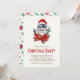 Captura el encanto de la temporada de fiestas con esta gran invitación a los Navidades de tiburones blancos, una adición caprichosa y reconfortante a tus celebraciones festivas. Esta encantadora carta cuenta con un tiburón colorido adornado con un Sombrero Santa y decorado con un guirnalda de poinsettia roja, frente a una escena de invierno nevada.