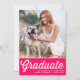 Invite a los invitados a su evento con esta invitación para graduación de fotos de personalizable. Presenta un guión audaz retro y tipografía clásica. Personalice agregando sus detalles. Esta invitación a graduación rosa caliente está disponible en otros materiales de cartón y colores.