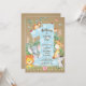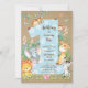 Invitación grande del cumpleaños de los muchachos de la selva linda una que ofrece un número grande azul uno rodeado por los animales, el mono, la jirafa, el león, el elefante y la cebra del safari en un fondo popular de Kraft.