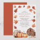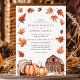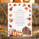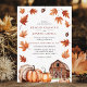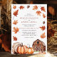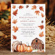 Bienvenidos a sus invitados a una boda de otoño rústica con esta encantadora invitación, que presenta un granero acogedor, calabazas y una deliciosa variedad de hojas de otoño y bellotas sobre un fondo blanco crujiente. Los tonos cálidos y terrosos, y los elementos naturales simples evocan la serena belleza de la temporada de otoño, lo que hace que este diseño sea perfecto para una celebración en el campo. Esta invitación captura la esencia de la época de cosecha, ideal para parejas que buscan un tema elegante pero rústico para su día especial.