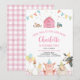 Invitación Granja de granjas rosadas Animales Barnyard Chica