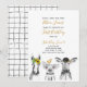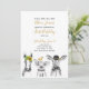 Invitación Granja de guión amarillo blanco negro primer Fiest